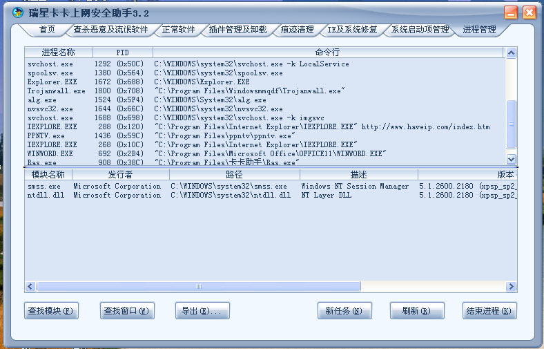 正在运行的进程(包括进程模块信息)