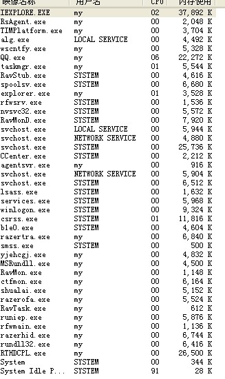 正在运行的进程(包括进程模块信息)