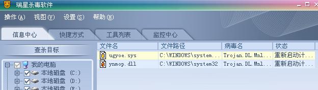 ugyoe/sys和ynmop.dll两个文件下是同一个病毒,安全模式下杀也杀不掉,总是显示“重启计算机后删除文件”,再杀,还有这个病毒,还是在相同的文件下。