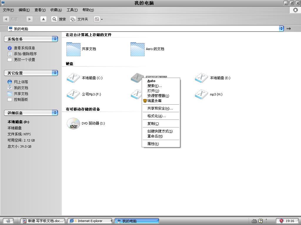 这个文章,发现我的电脑上中的病毒和您描述的一样,很多执行文件变了样子,属性是番茄花园。然后有俩个盘 d e都不能直接双击打开,