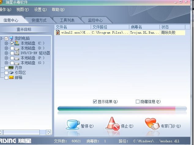 【求助】瑞星把病毒查出来,可怎么杀不了啊?救救我