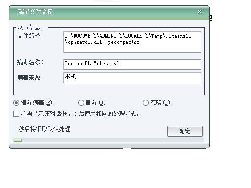 每次开机,都发现这个病毒!(图一)瑞星只能监测却不能根本杀毒啊!!!?