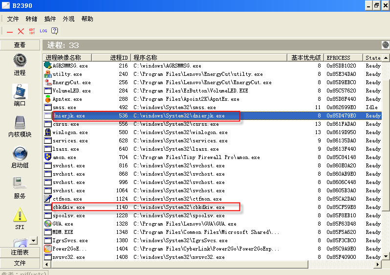 + IceSword.exe            c:\windows\system32\dnierjk.exe