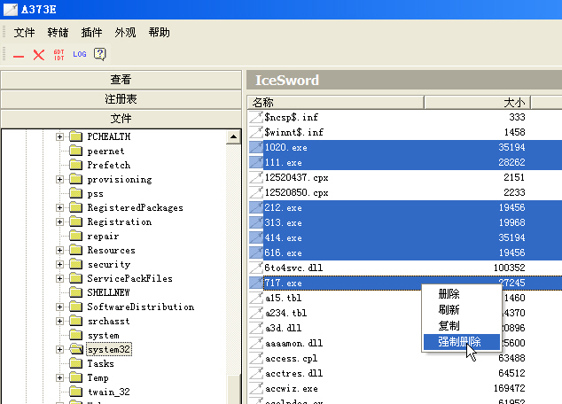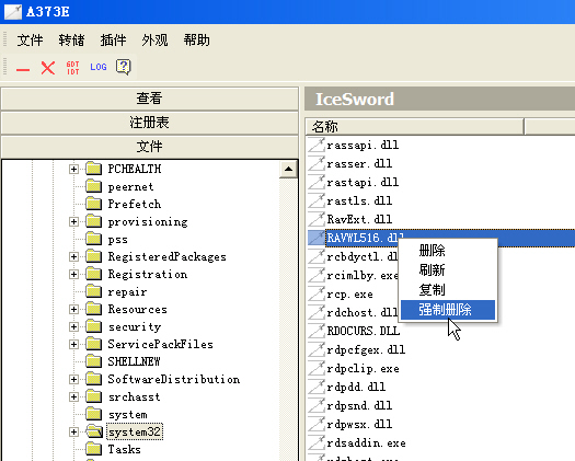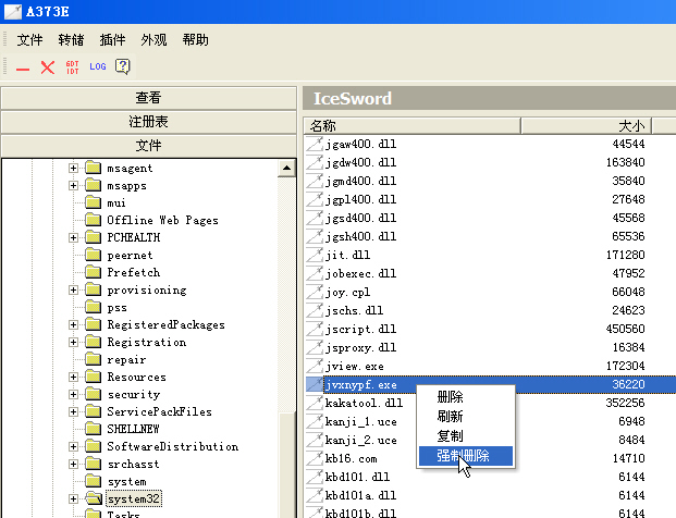 5、此时可用资源管理器或WINRAR删除其余的病毒文件(图5)。当然,你也可以用IceSword删除这些病毒文件。我之所以这样做,是出于安全考虑。IceSword删除的文件不能恢复,万一删错,就麻烦了。我的原则是:能不用IceSword删除的,尽量不用IceSword删除。