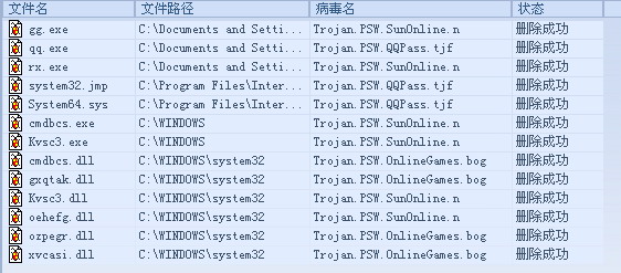 上个礼拜中招了,就把整个硬盘格式化,从新装了系统.好日子过了5天,今天又杀出这么多病毒,给瑞星打电话,回答说关掉硬盘的系统还原,然后进安全模式杀毒,照做了,可是,过了一个小时在杀毒,居然出来更多的病毒,附件里这些就是,不知道怎么才可以彻底删除,总不能几天就格式化一次硬盘,装次系统,请教高手指点,瑞星杀毒软件提示删除成功了,可是,启动电脑后没多久,又会杀出来,现在我的电脑还是关闭系统还原的,不知道该怎么办了.用的是XP SP2系统,谢谢高手!!!