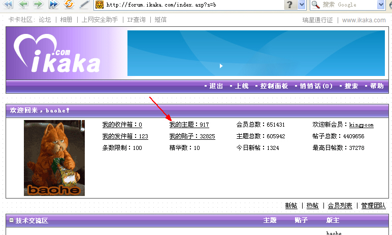 如何在kaka论坛搜索自己发表的帖子?
