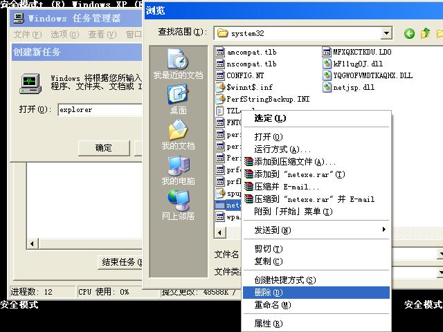 安全模式下(开机后不断 按F8键  然后出来一个高级菜单 选择第一项 安全模式 进入系统)