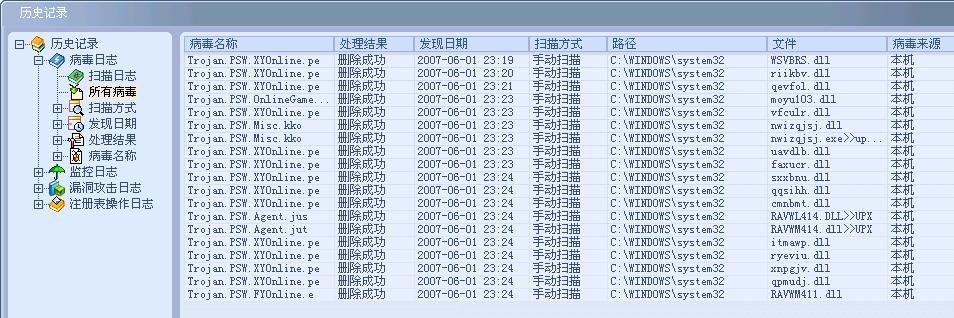 2/把瑞星中的EXE文件全部在原文件夹中复制一遍,后运行复制后改名的文件就可以进行杀毒了[如图所杀],而后重启程序就一切正常了.