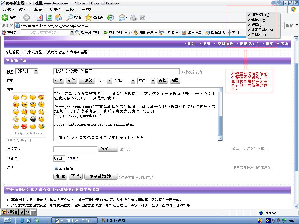 瑞星卡卡安全论坛技术交流区反病毒/反流氓软件论坛 【求助】今天中了一个超怪的毒...从未碰到过...求高手救命