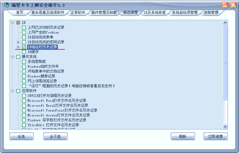 【求助】现在版本的卡卡助手如何清理IE地址栏的网址??