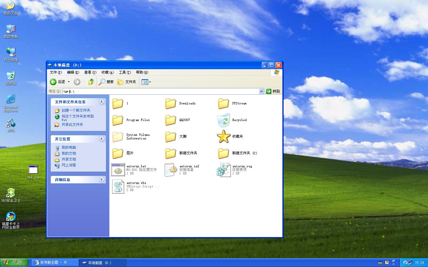 手动删除后会自动生成,并产生Auto选项.复选不显示所有文件和文件夹选项从而隐藏autorun.bat autorun.inf autorun.reg autorun.vbs这4文件