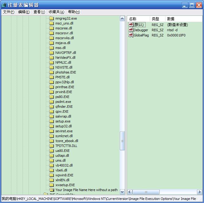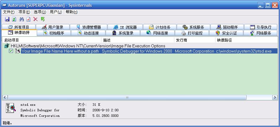 YOUR IMAGE……那一项里面的NTSD好像是进程调试器,可以强行结束除系统核心进程外的任何进程