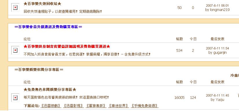 说了半天,大家休闲一下,给大家(尤其是色友们,嘿嘿)推荐一个免费的论坛,有图片\BT\还有电影.大家去注册一下.没事时休闲一下.