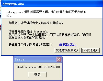 EXE文件打不开,一打开就弹出个对话框里边写的Runtime error 204