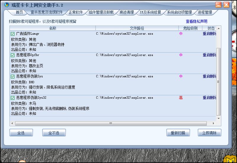 对了还有件事忘说了……卡卡报告有木马,点清除说重起杀毒,可重起完了……在查还有
