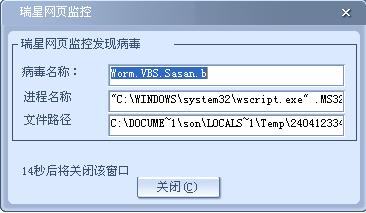 每次开机都会出现这个病毒,各个盘符都无法正常打。每次双击都会出现这个图片,而且文件路径常变,瑞星软件又查杀不到病毒,只能监控到它。