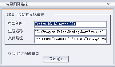 Trojan.DL.JS.Agent.llm    跳过脚本    2007-08-20 15:11    网页/脚本监控    C:\DOCUME~1\ADMINI~1\LOCALS~1\Temp    2832180107032.tmp