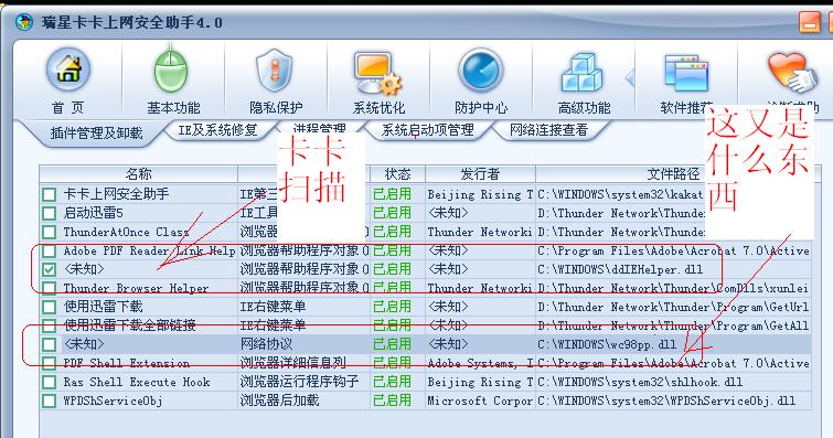 用卡卡扫描没提示有问题,只是说未知软件。