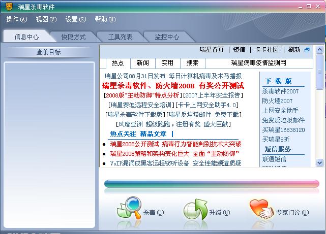 瑞星莫名其妙的就起不来了~手动打开后~画面就是这个效果~也不知道为什么~有高手帮忙看下啊~是不是瑞星被劫持了啊~