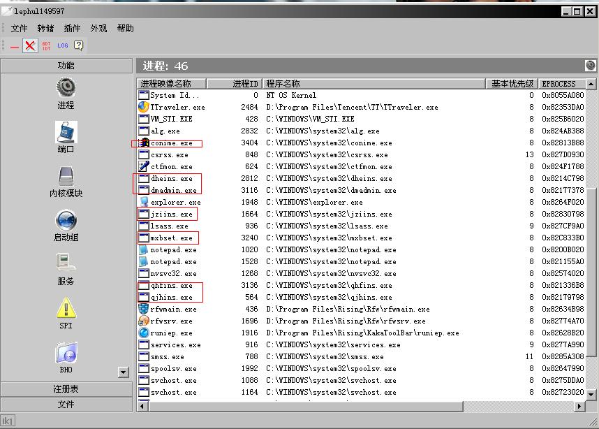 然后机子重启下.删除下列病毒.还有需要删的如下