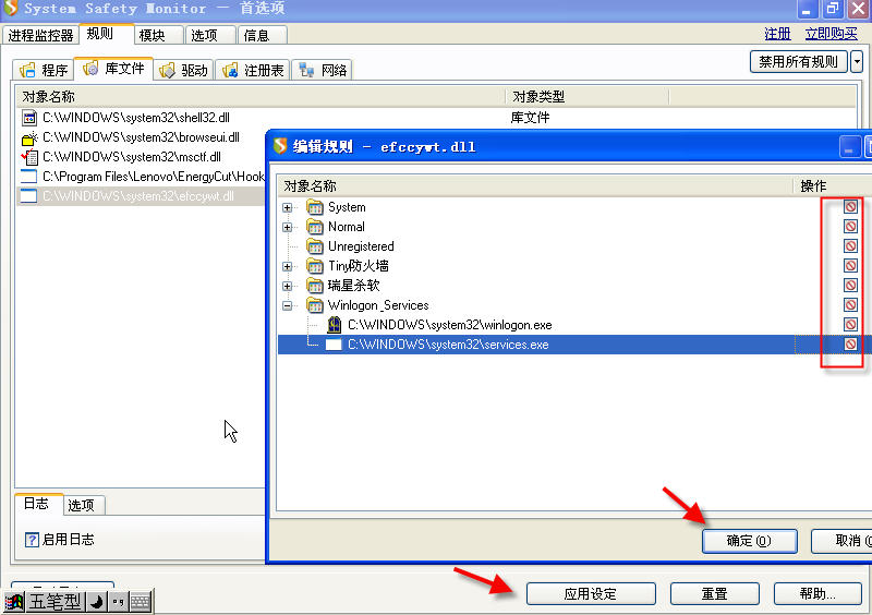 我试图用SSM禁止此DLL加载运行(图3)——无效。重启系统后,winlogon.exe和Explorer.EXE进程中依然可见efccywt.dll。用IceSword可以强制卸除Explorer.EXE进程中的efccywt.dll,但是强制卸除winlogon.exe进程中的efccywt.dll时,系统崩溃、重启。重启后,efccywt.dll依然插入上述两个进程。