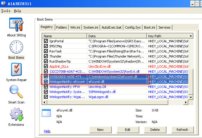 [HKEY_LOCAL_MACHINE\SOFTWARE\Microsoft\Windows NT\CurrentVersion\Winlogon\Notify\efccywt]