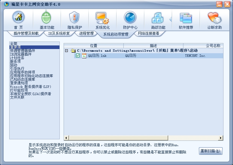 怎样使用卡卡助手删掉这个文件的启动项,怎样重启电脑到安全模式下删除,请前辈讲解的详细一点,最好把步骤一一说明,小菜鸟在此不胜感激