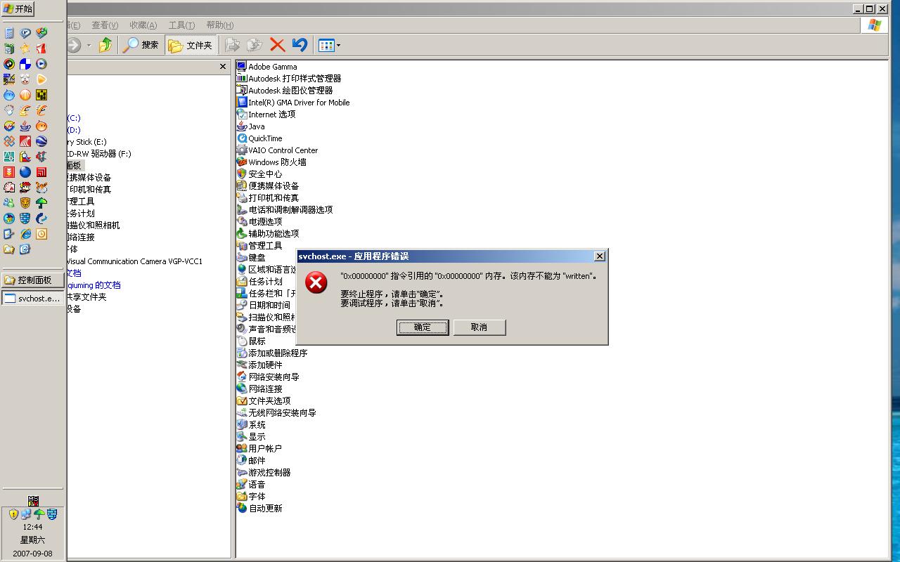 最近总时不时的出现svchost.exe应用程序出错的提示 0x00a3a05b引领的0x0000000c内存无法"read".我点确定或取消都没用,还是会时不时出现.杀毒软件没查出有毒.用"超级兔子"修了IE也不行.