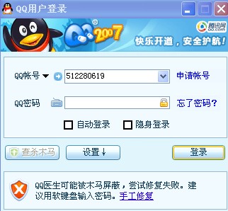 我的QQ登陆时为什么这样呢?是中毒了吗?可是用瑞星查了N次都查不出病毒来啊~
