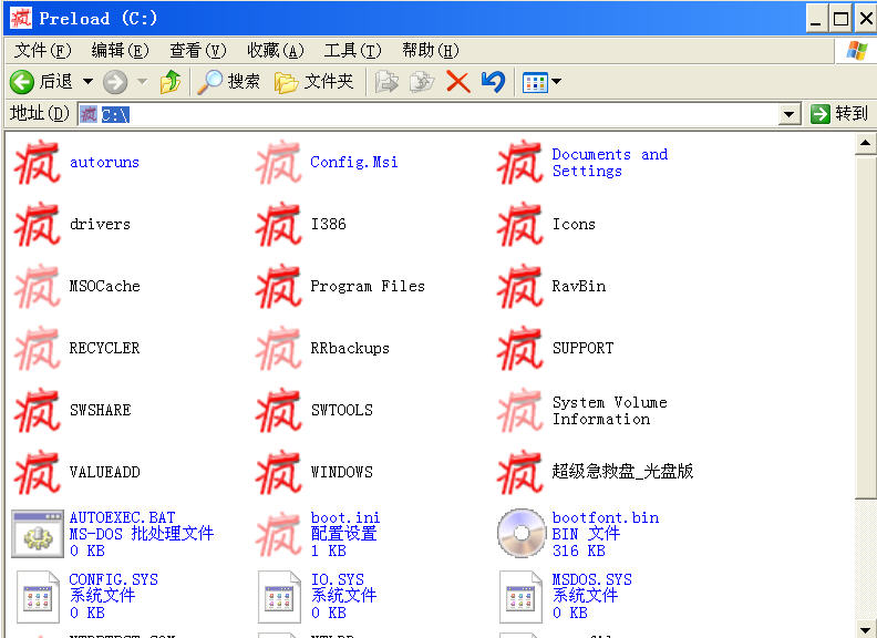 中招后的症状(图1)。号称熊猫烧香在疯狂感染文件。