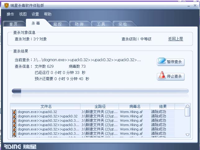 瑞星2009版查杀引擎测试