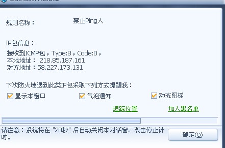 详细内容2007-10-17 20:55:04, 系统禁止接收ICMP数据包;地址为:218.85.187.161 <= 218.53.135.183 Code=0, Type=8 ;满足规则:禁止Ping入