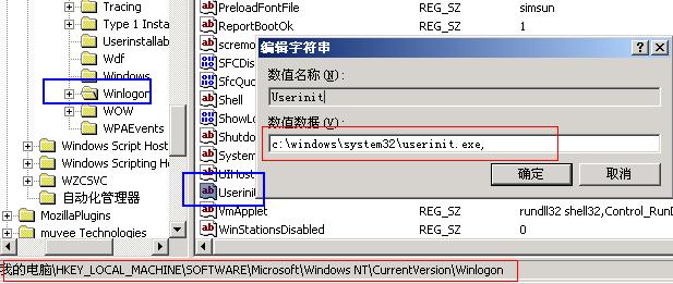 编辑<Userinit><C:\WINDOWS\system32\Userinit.exe>