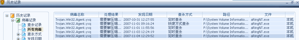 你那张图显示的所有病毒都在F盘的“系统还原”文件夹中。