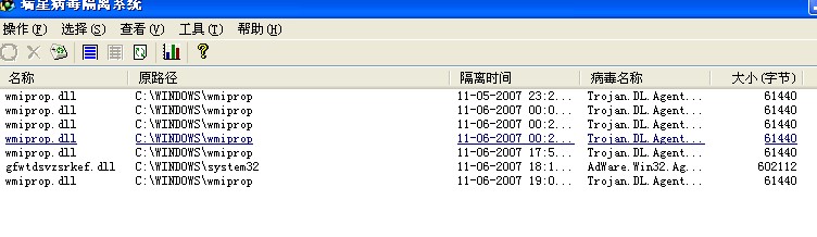 c盘下有个wmiprop.dll,一连网就提示病毒,用瑞星杀掉后重起,再连网又出现了,下了AVG也杀不掉,安全模式也杀不掉,求高手帮忙