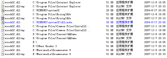 【求助】发现电脑里面好多隐藏的wsock32.dll文件