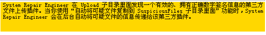 我今天开机就发现电脑启动异常,于是扫描发现,会将可疑信息传递给第三方。如下图