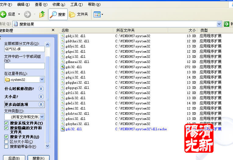删除所有GD*I32.dll,bj*rl.dll,addr*help.dll即可(注意gdi32.dll不要删除)