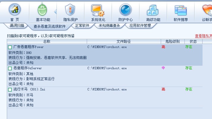 我的基本功能里查杀恶意及流氓软件有三个可疑程序残留无法彻底删除怎么办