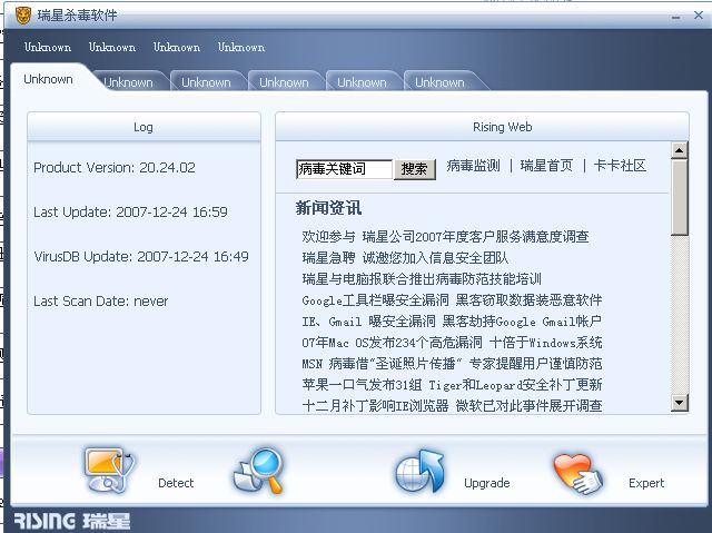 为什么我的瑞星工具栏、选项卡都是Unknown,是不是配置文件出错了?怎么修复啊。谁能帮下我啊!先谢谢了!