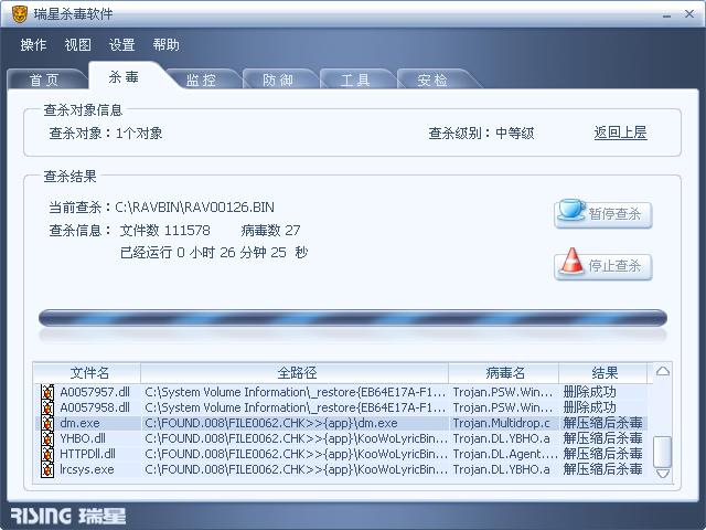 我在C盘根目录下查到如图中的病毒,要求解压缩后杀毒,可是我根本找不到那个FOUND008,我已经是显示了全部文件也没有,我搜索还是没有,请问怎么杀?