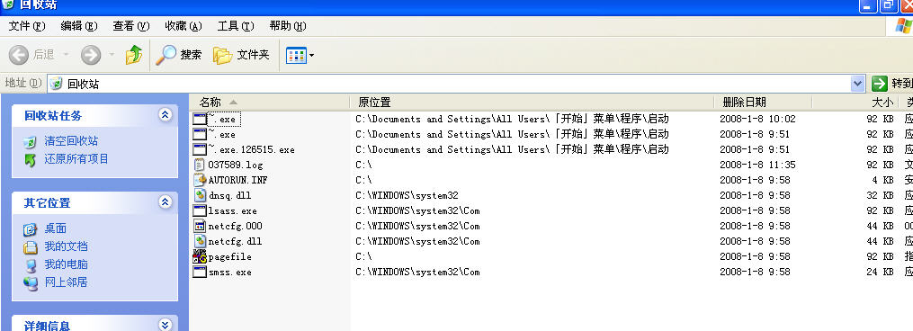 运行后,病毒反复写C:\Documents and Settings\All Users\「开始」菜单\程序\启动\~.exe这个文件。估计是唯恐中招者发现/删除此文件后,下次启动系统时,病毒不能加载运行。此乃典型的“一根儿筋”式的思维!!您(病毒作者)就不能改换个策略,在用户关机前写这个文件吗?汗!!要知道,对于那些配置不高的系统来说,这样反复、连续的删注册表/写文件的动作会使系统运行速度明显变慢,从而导致中招者发现异常。人家没办法删你这个NB病毒,还没办法用备份恢复系统吗?退一步说,就算中招者没有系统备份,人家不会重装系统吗?再者说,您(病毒作者)这个“大作”还没牛B到“非重装系统不行”的份儿上呢!
