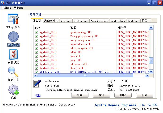AppInit_DLLs的值正常情况下应该是空的,编辑这个启动项,把它的值都删除掉,保持空白就行了。