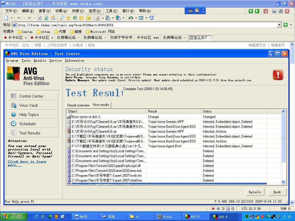 这是瑞星全盘杀后用AVG杀的,还有这么多。瑞星???