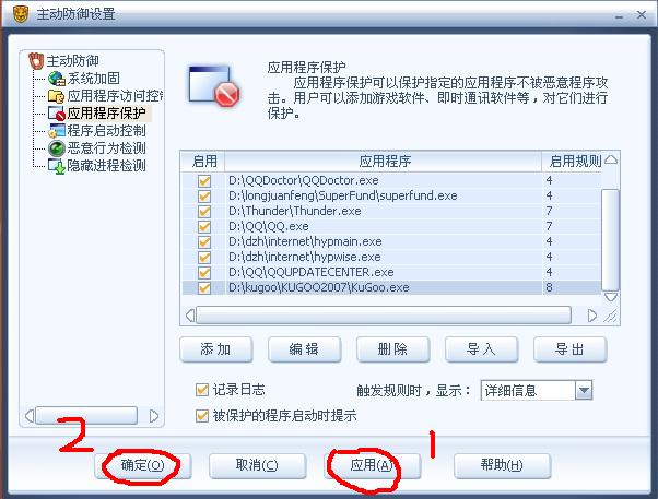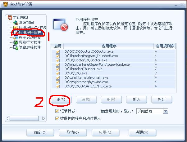 首选我们打开主动防御,选应用程序保护,其实帐号保险柜是从这里扩展出来的。