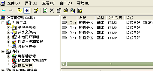 奇怪的就是磁盘管理里只有显示原来的CDEF