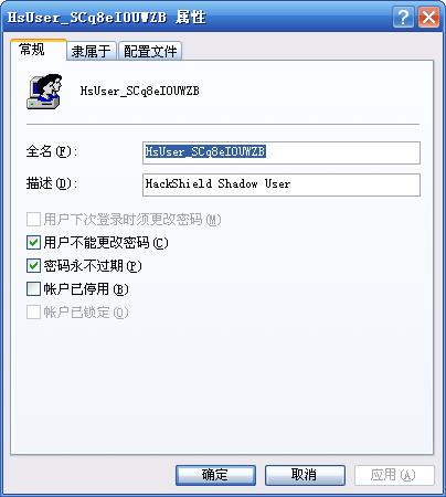 在安装了天联世纪代理的网络游戏拍拍部落后便会在本地用户中产生一个名为HsUser_SCq8eI0UWZB的用户 对其的描述为HackShield Shadow User 拥有管理员权限 在网上看到某些文章称其实用来反外挂的 但实在是有些可疑 希望能有人能够出来说明一下
