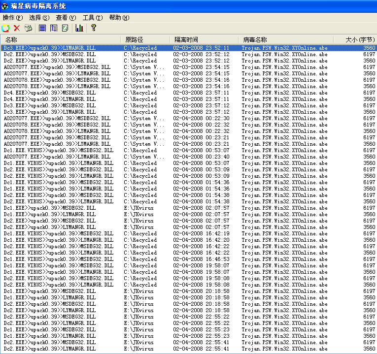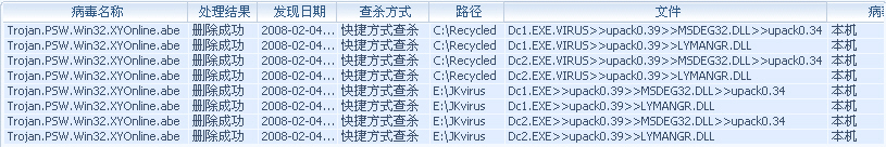 【求助】[Trojan.PSW.Win32.XYOnline.abe]这个病毒瑞星总也杀不掉!