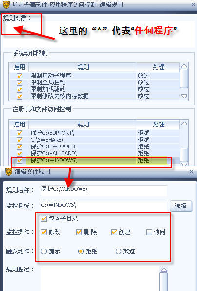 使用瑞星2008者,预防的办法比较简单:只在瑞星的“主动防御”中设置一条如图所示的规则即可完全挡住这是狗。