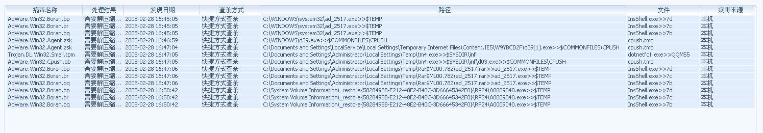 目前升级的版本是20.33.31,查出以下病病毒,但需要解压缩后杀素毒,可是这此并不是压缩文件,不知该怎么操作,向各位大侠们求助。